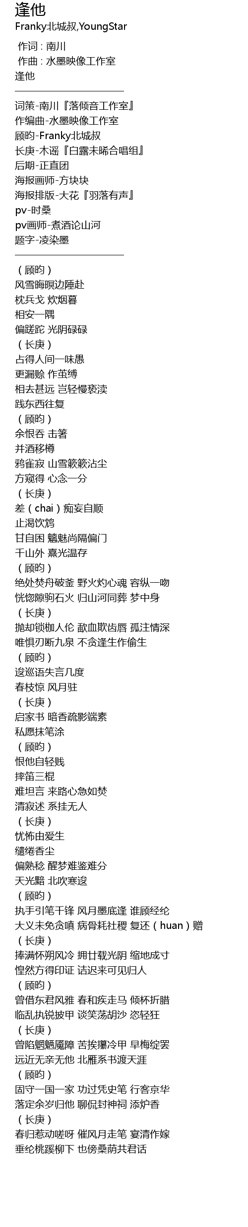 | [00:03.403] | 词策-南川『落倾音工作室』 |