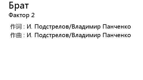 | [00:00.000] | 作曲 : И. Подстрелов/Владимир Панченко |