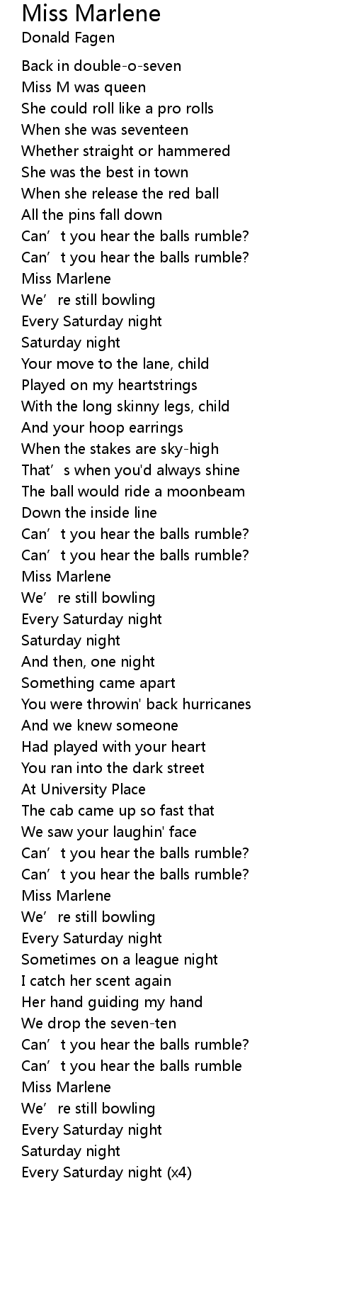 | Song | Miss Marlene |
