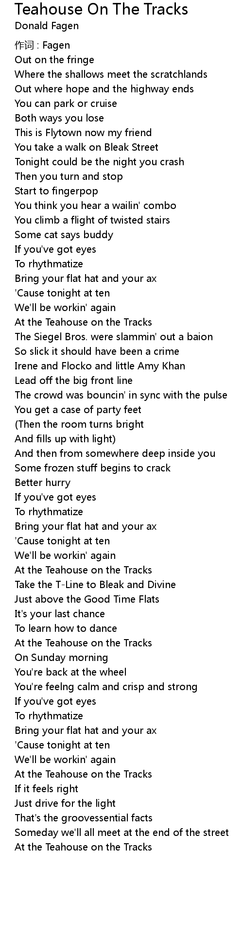 | Song | Teahouse On The Tracks |
