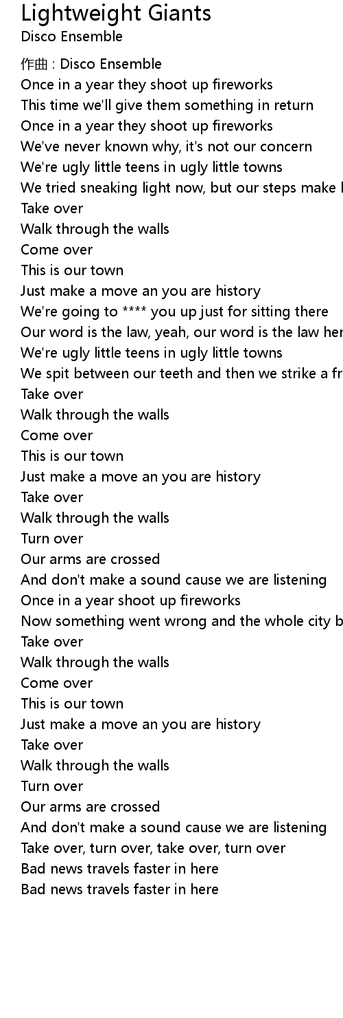 | Song | Lightweight Giants |