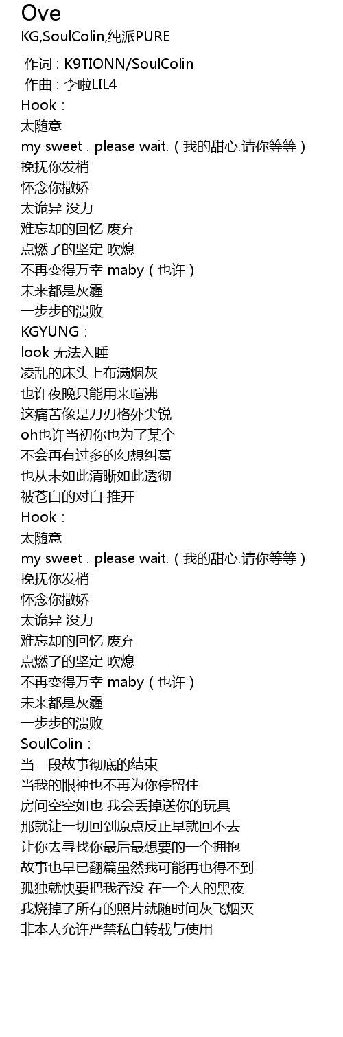 | [00:00.000] | 作词 : K9TIONN/SoulColin |
