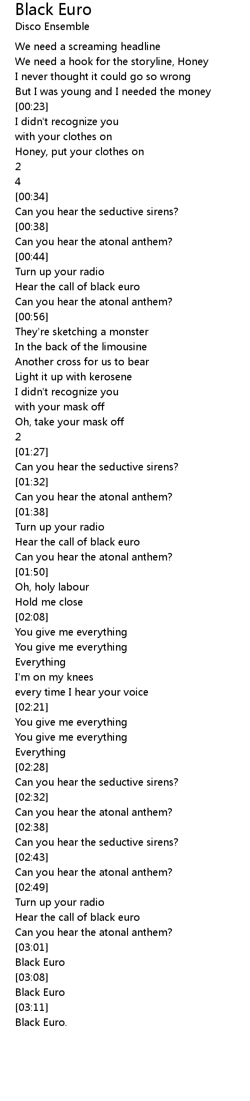 Hear the call of black euro |