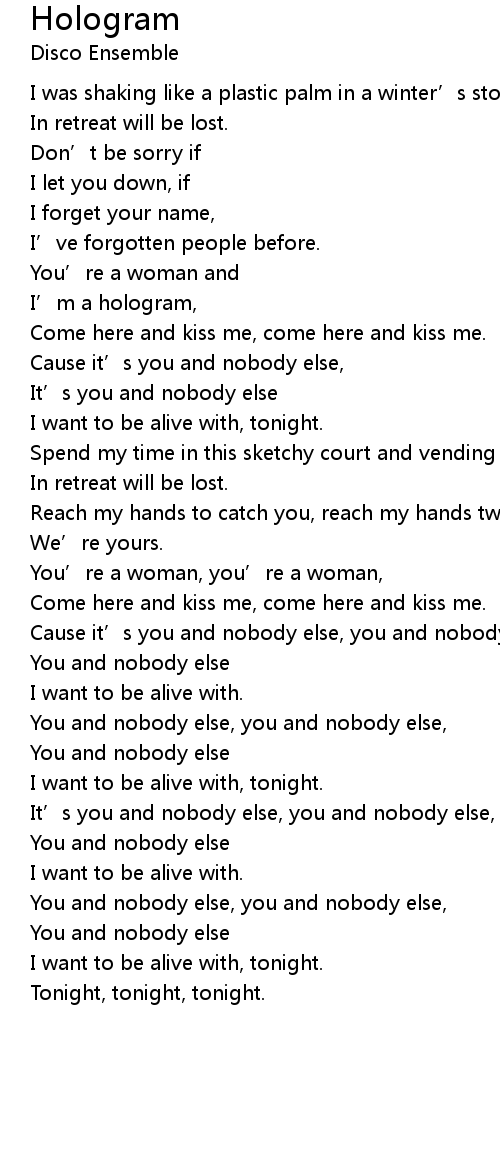 | Come here and kiss me, come here and kiss me. ‘ | |