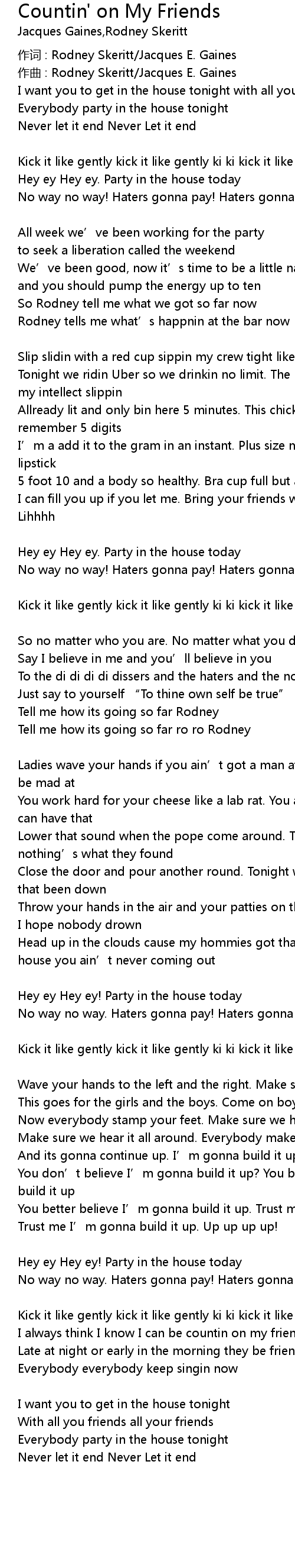 | Song | Countin' on My Friends |