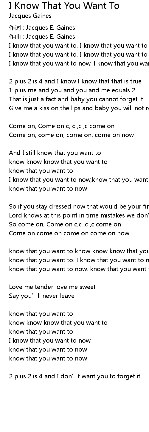 | I know that you want to now,know that you want to now | |