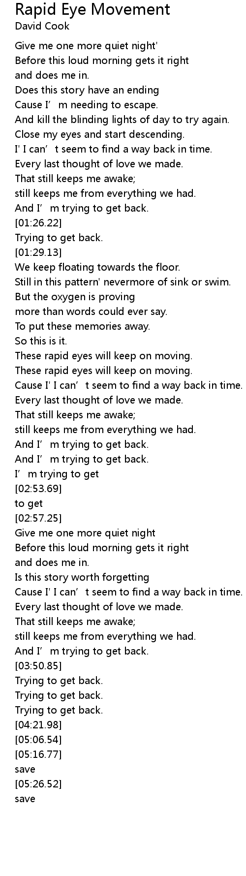 | [02:04.82] | These rapid eyes will keep on moving. |