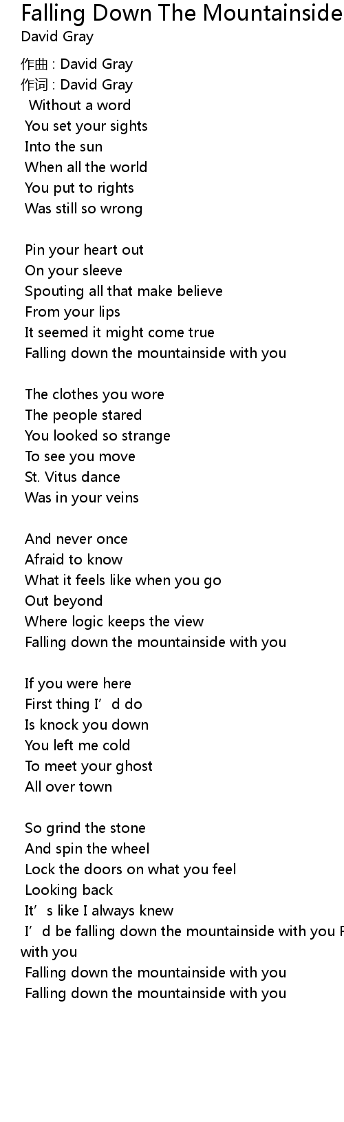 | I' d be falling down the mountainside with you Falling down the mountainside with you | |