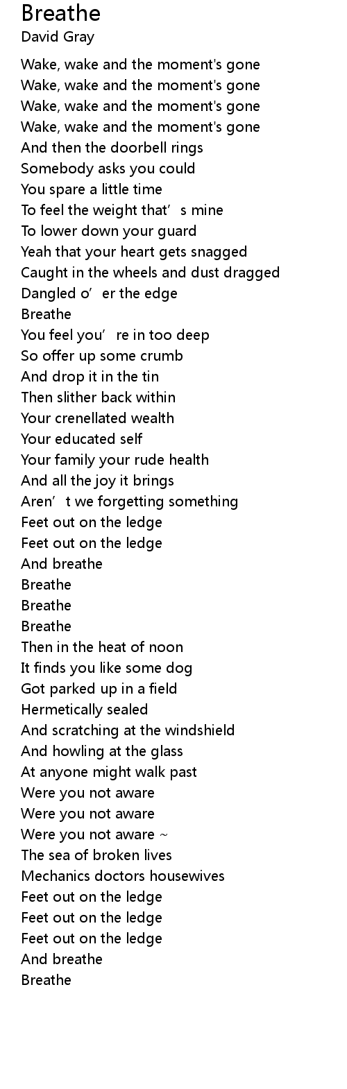 | [02:25.22] | Breathe |