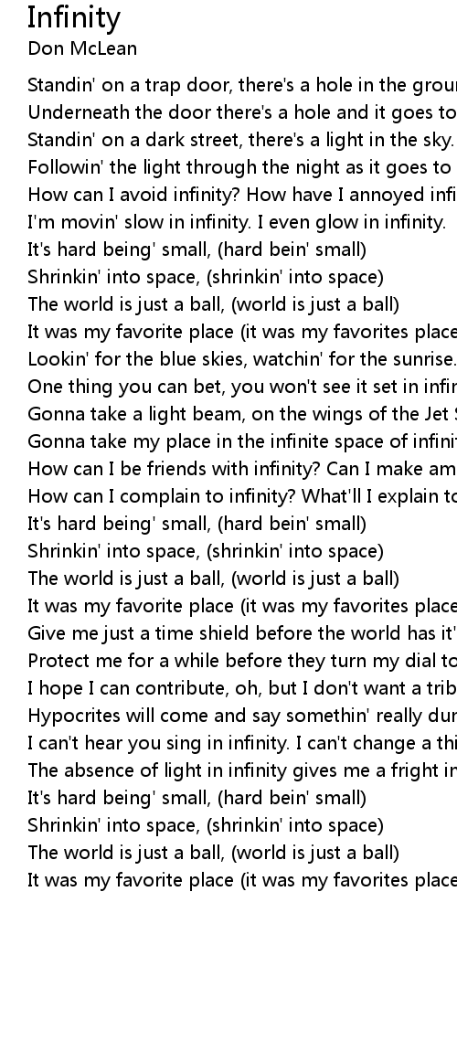 How can I be friends with infinity? Can I make ammends with infinity? |