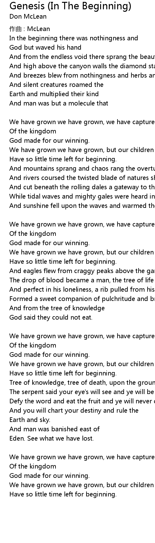 | Song | Genesis (In The Beginning) |
