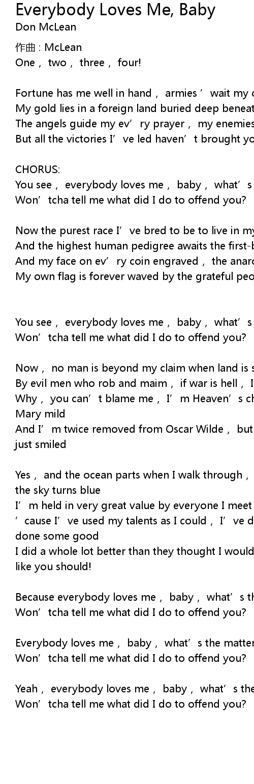 | Because everybody loves me, baby, what' s the matter with you? | |