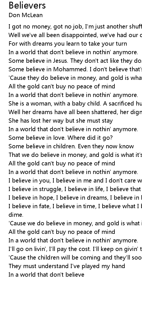 In a world that don't believe in nothin' anymore. |