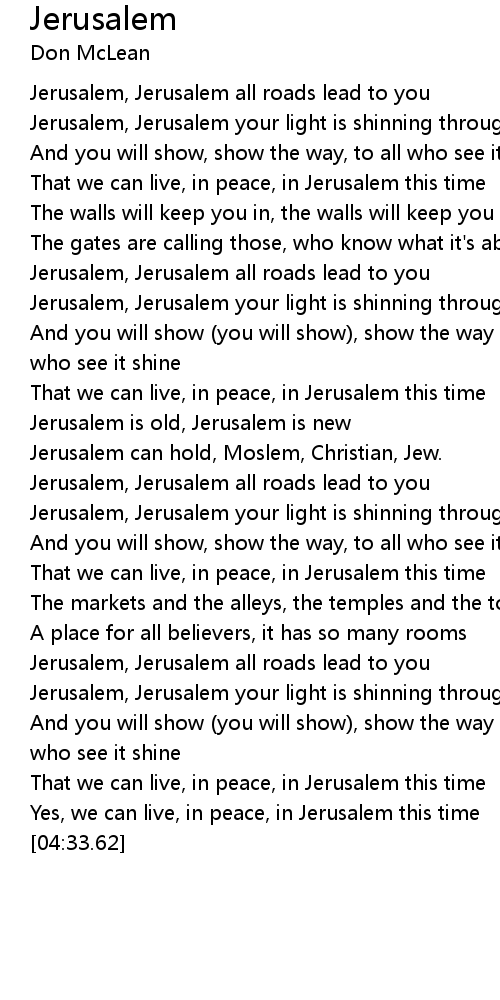 Jerusalem can hold, Moslem, Christian, Jew. |