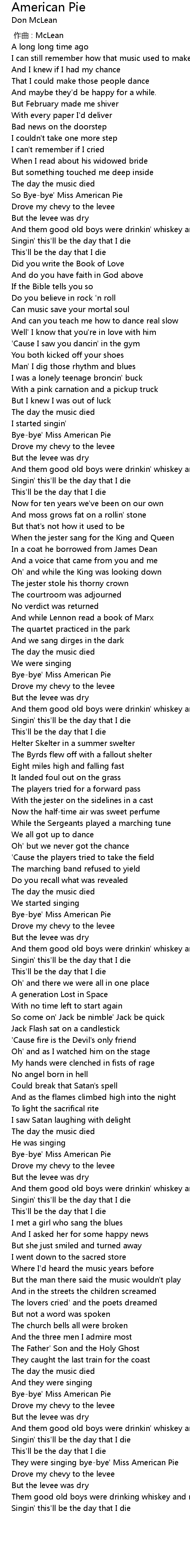 | [04:58.0] | Bye-bye' Miss American Pie |