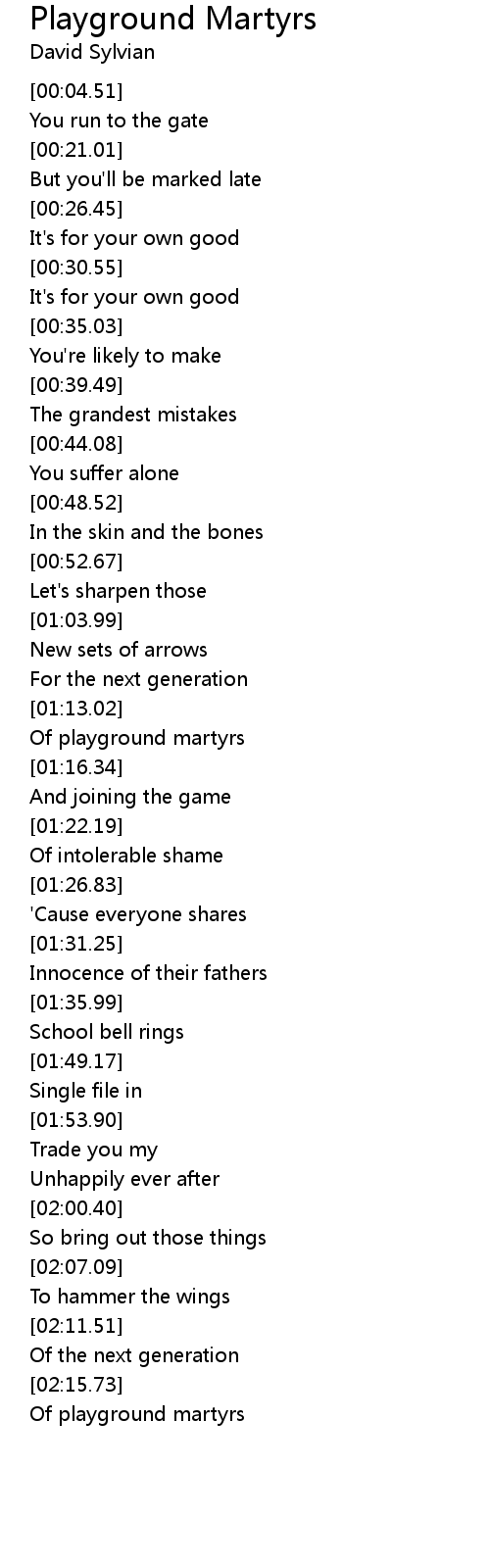 Of playground martyrs |