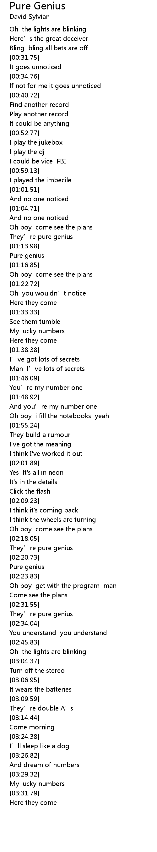 | [02:18.74] | They' re pure genius |