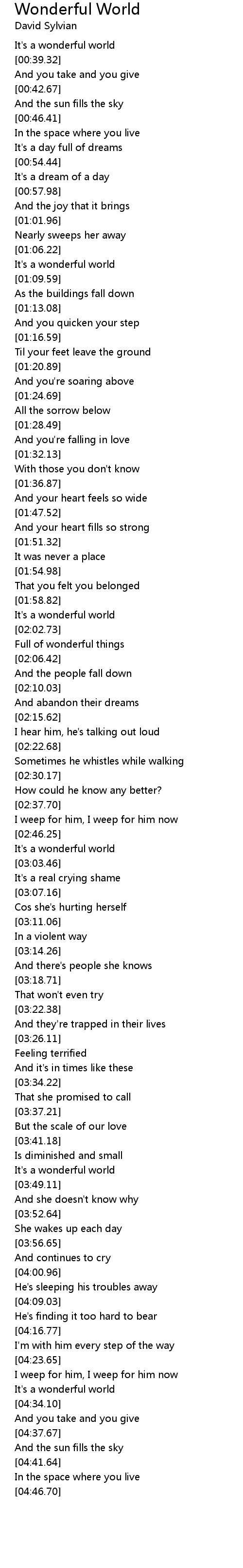 It's a wonderful world |