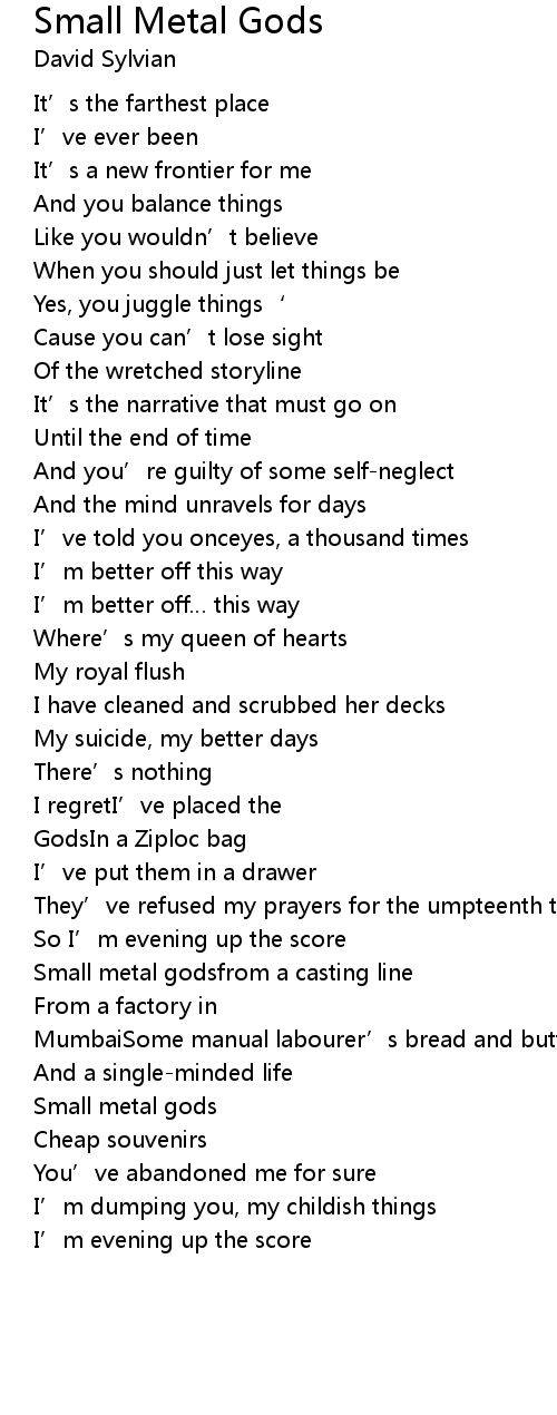| Song | Small Metal Gods |