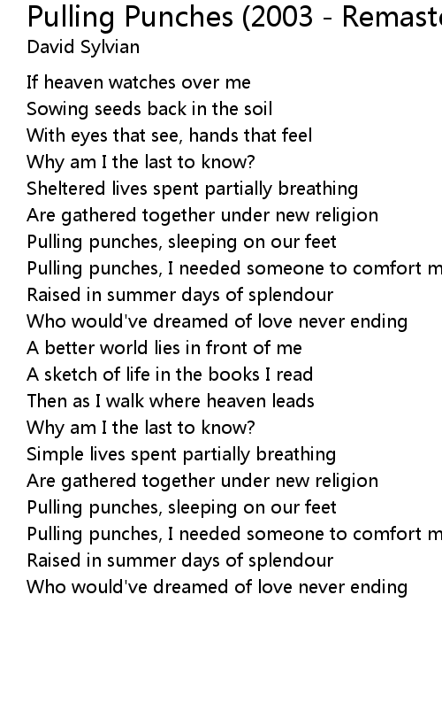 Pulling punches, I needed someone to comfort me |