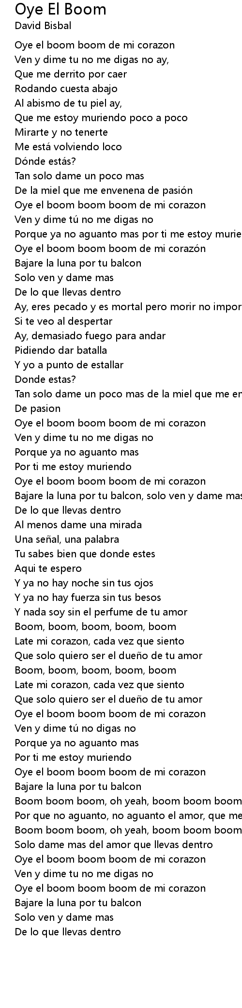 | Oye el boom boom boom de mi corazón | |