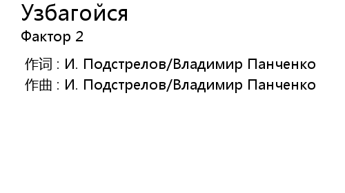 | [00:00.000] | 作曲 : И. Подстрелов/Владимир Панченко |