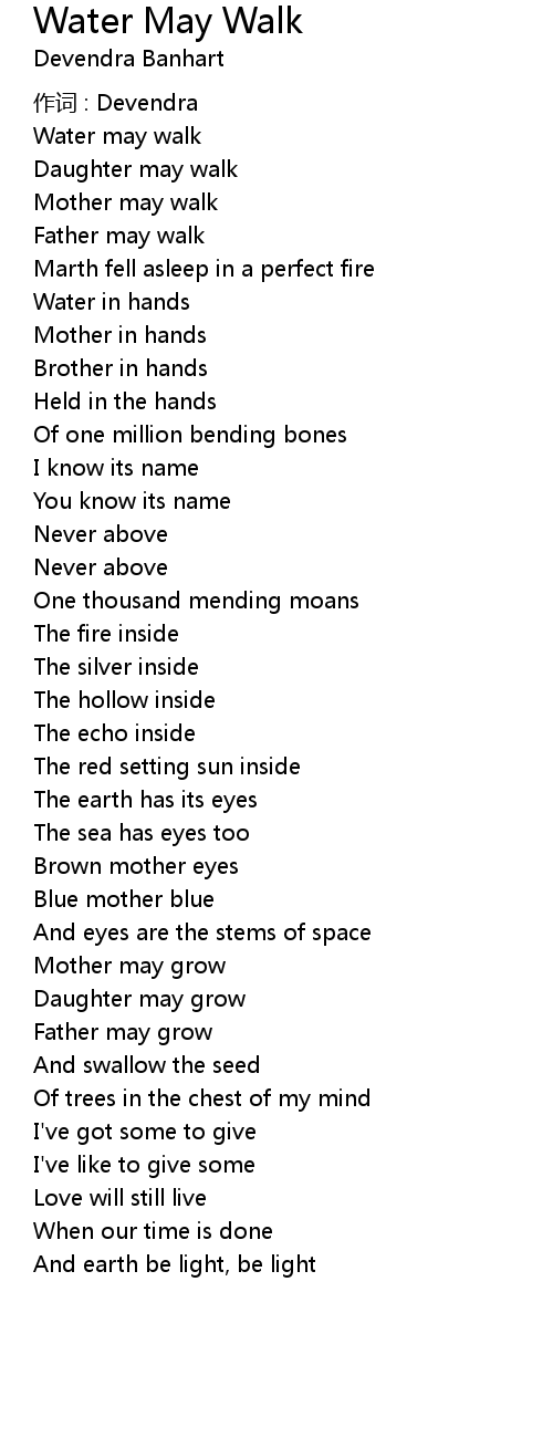 | Song | Water May Walk |
