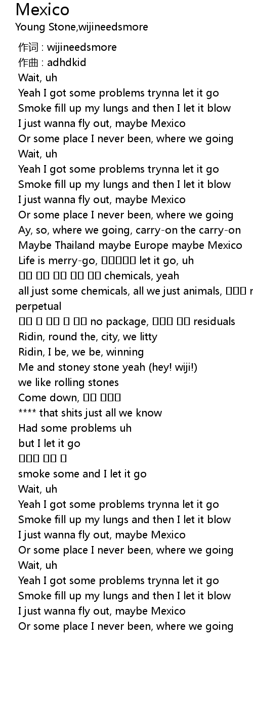 | [00:19.356] | I just wanna fly out, maybe Mexico |
