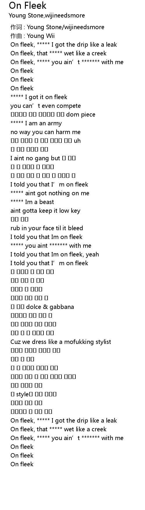 | [00:17.885] | On fleek, ***** I got the drip like a leak |