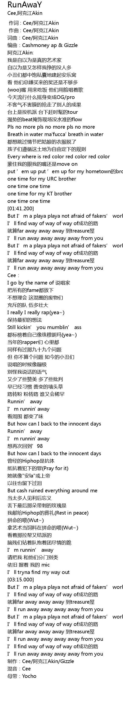 | [03:55.000] | 制作:Cee/阿克江Akin/Gizzle |