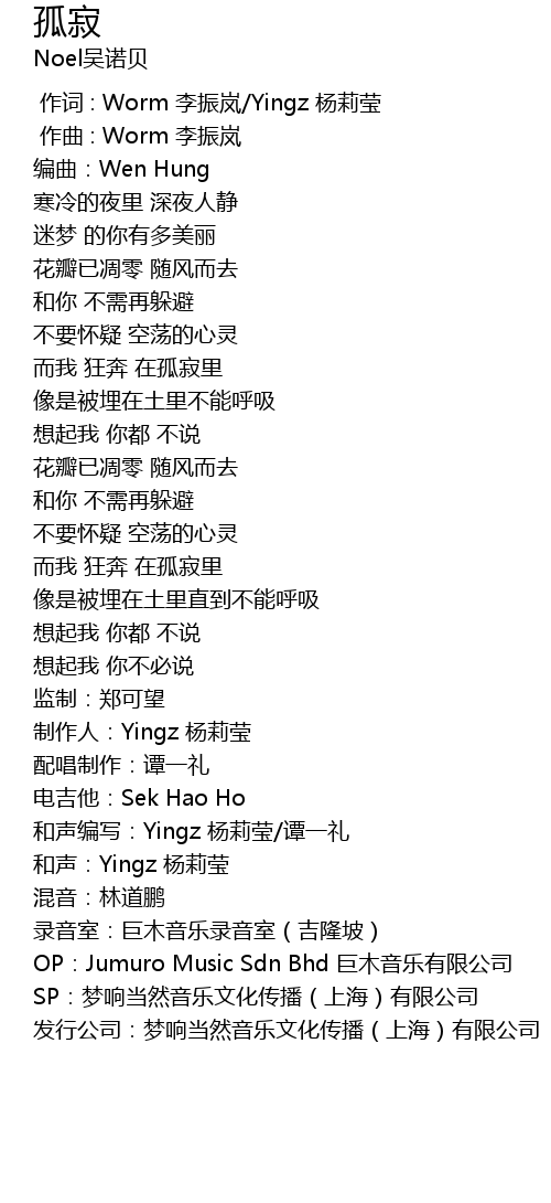 | [03:09.67] | OP: Jumuro Music Sdn Bhd jù mù yīn yuè yǒu xiàn gōng sī |