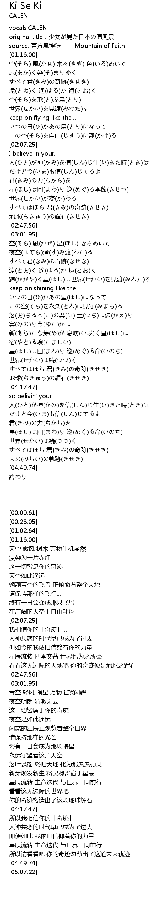 | [03:23.500] | すべて君(きみ)の奇跡(きせき) |