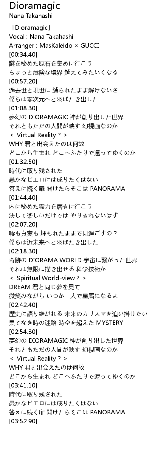 | [03:16.90] | 夢幻の DIORAMAGIC 神が創り出した世界 |