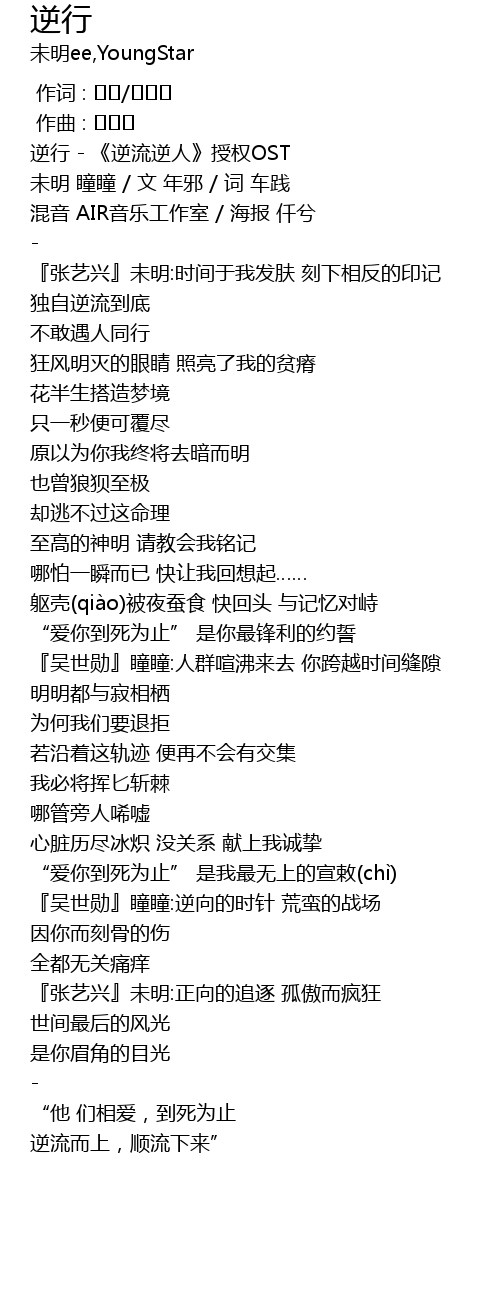 | [00:01.480] | 逆行 - 《逆流逆人》授权OST |