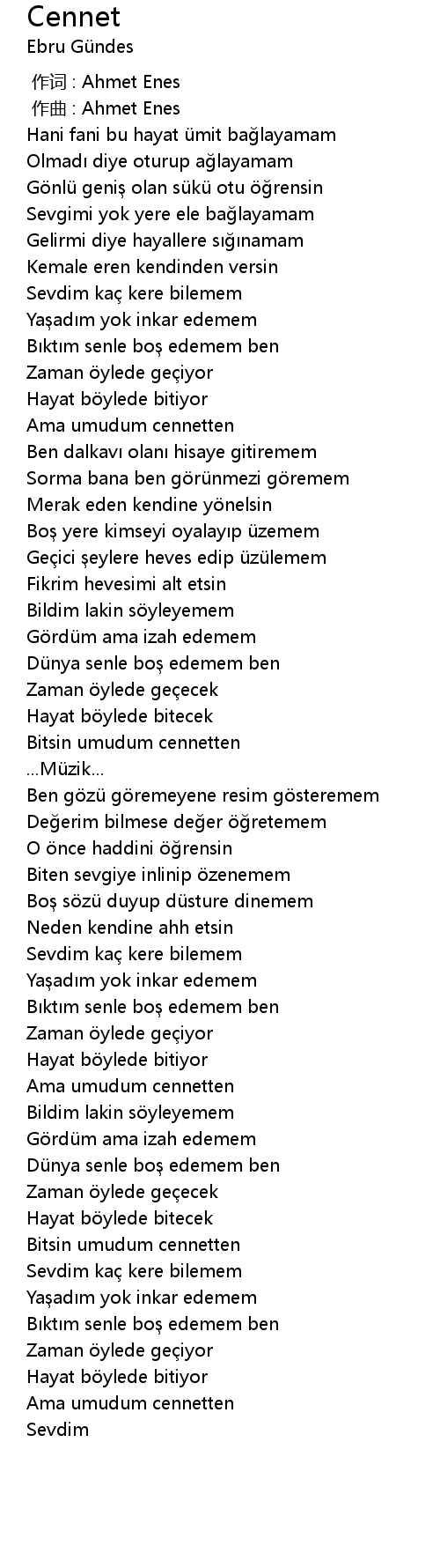 | [00:00.000] | zuo ci : Ahmet Enes |