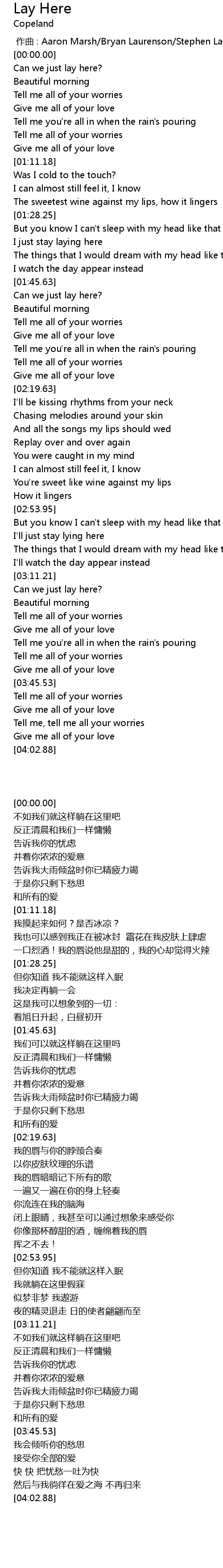 | [01:33.20] | I just stay laying here |