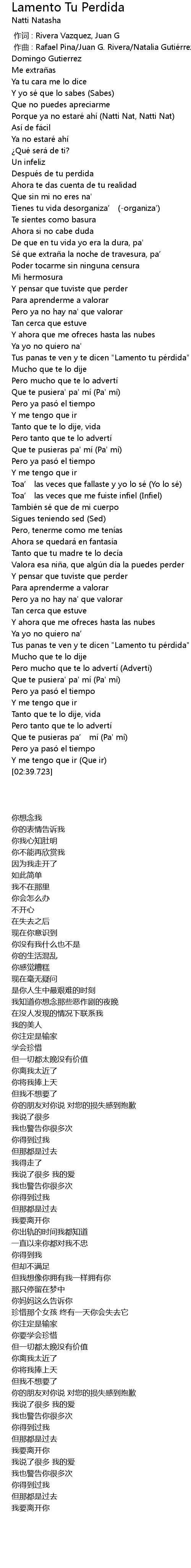 | [00:13.516] | Porque ya no estare ahi Natti Nat, Natti Nat |
