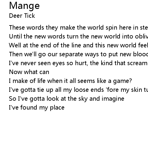 | I've gotta tie up all my loose ends 'fore my skin turns to mange | |