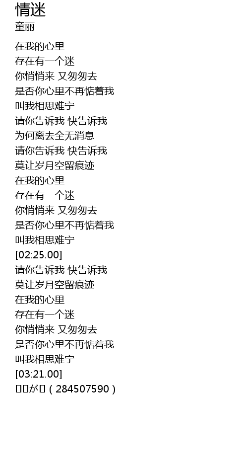 | [00:43.00] | 你悄悄来 又匆匆去 |