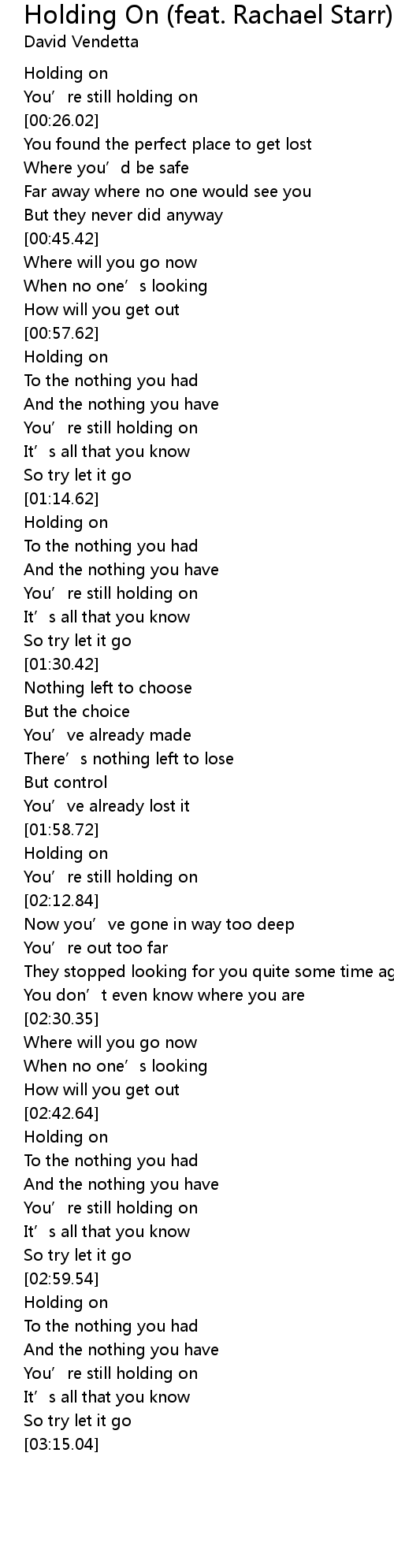 | [00:15.62] | Holding on |