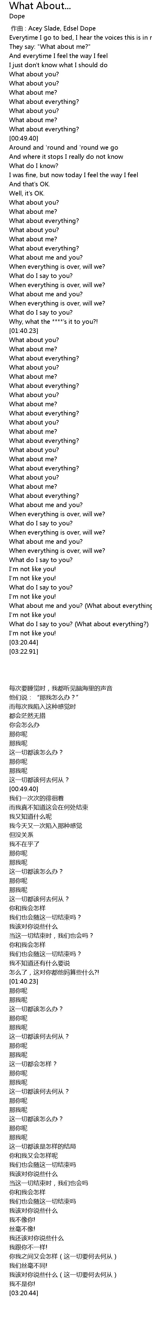 | [03:08.76] | What about me and you? (What about everything?) |