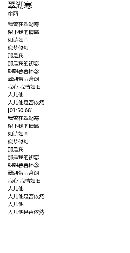 | [03:10.68] | cuì hú dài yǔ hán yān |
