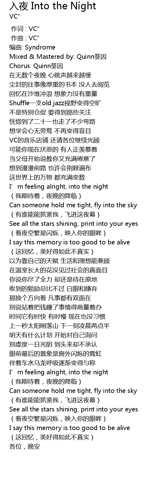 | [00:00.000] | 作词 : VC° |