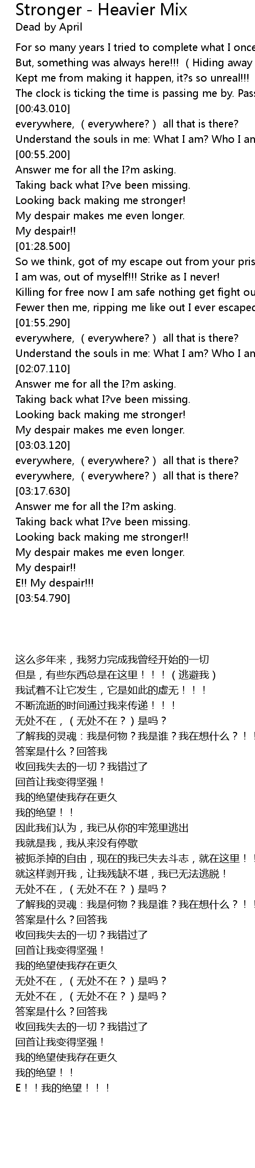 | [03:30.240] | Looking back making me stronger!! |
