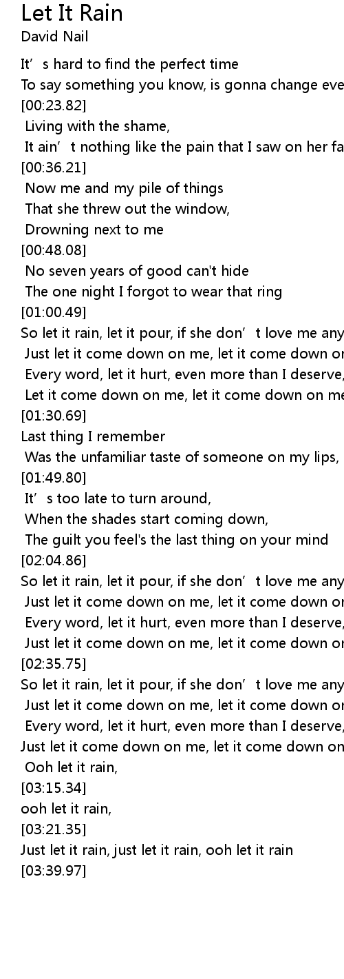 | [03:01.41] | Just let it come down on me, let it come down on me, let it rain, |