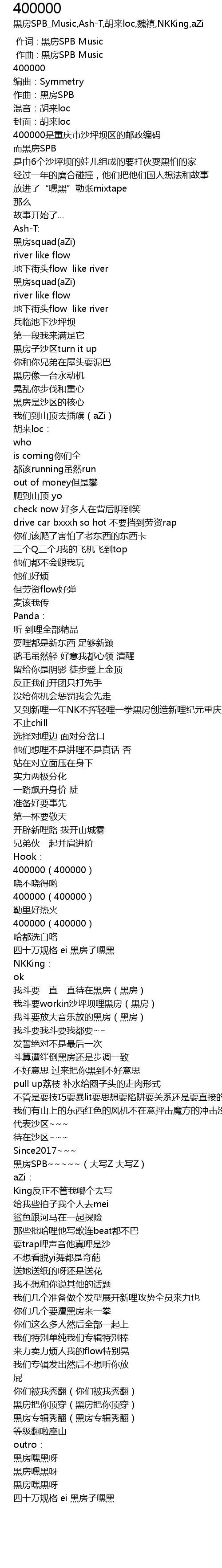 | [00:19.903] | 放进了“嘿黑”勒张mixtape |
