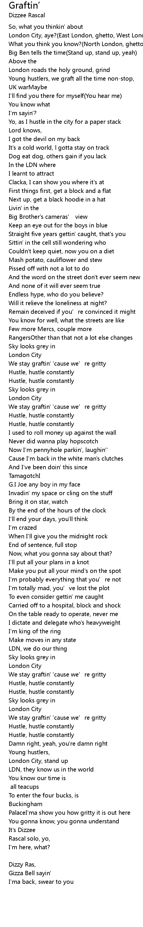| We stay graftin' ' cause we' re gritty | |