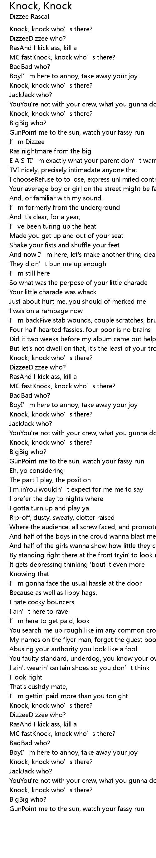 | MC fastKnock, knock who' s there? | |