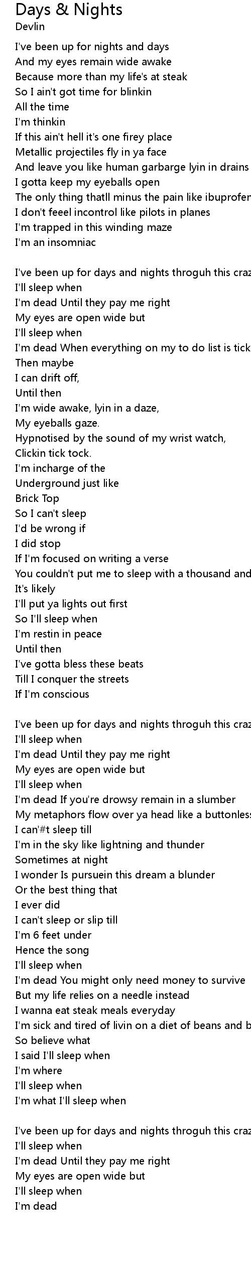 You couldn't put me to sleep with a thousand and nine bottles of night nurse |