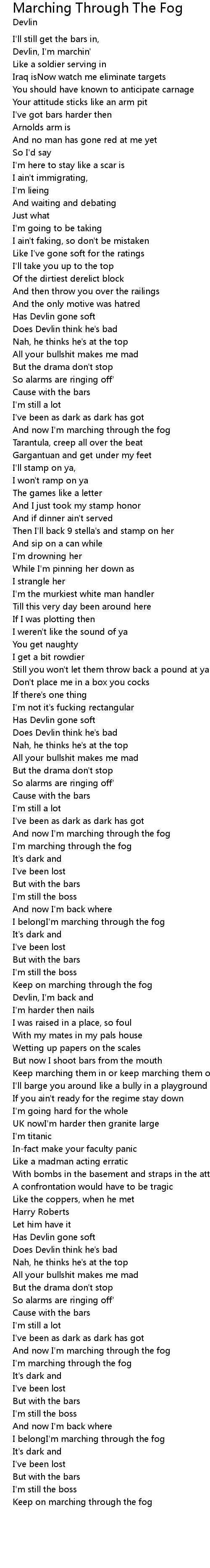 And now I'm marching through the fog |